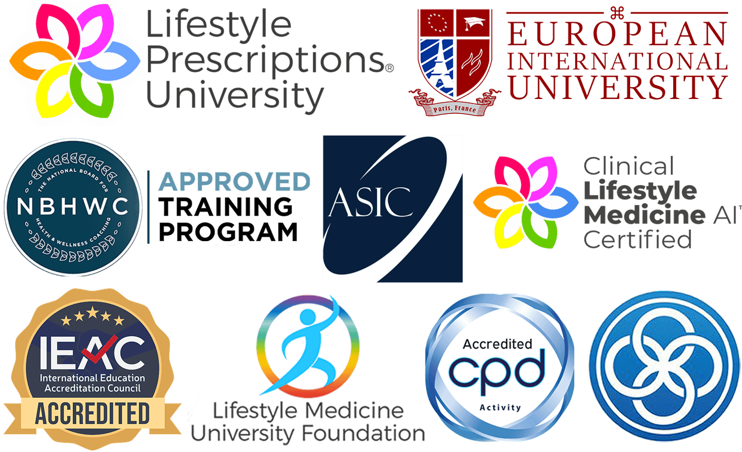The Lifestyle Prescriptions® University is accredited by the Accreditation Service for International Schools, Colleges, and Universities (ASIC UK). The University has earned Premier status with ASIC for its commendable areas of operation.